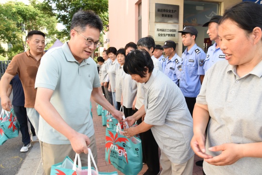 慰問現(xiàn)場,公司領(lǐng)導(dǎo)向一線員工表達(dá)了誠摯的感謝與敬意。叮囑大家要加強(qiáng)自我保護(hù)意識,科學(xué)安排作息,注意勞逸結(jié)合,務(wù)必做好防暑降溫工作,保障自身安全健康。