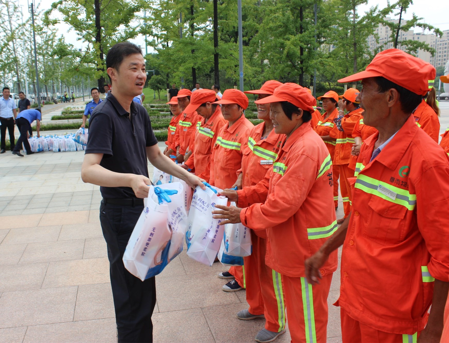 7月26日上午,園區(qū)黨工委委員、管委會副主任、規(guī)劃建設局局長許紹杰帶隊,親切慰問了奮戰(zhàn)在一線的城市維護作業(yè)人員,給他們送去了夏日里的問候和黨的關懷,感謝他們?yōu)閳@區(qū)的整潔、優(yōu)美城市環(huán)境所作出的貢獻。